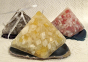 crystal pyramid and a stone slice